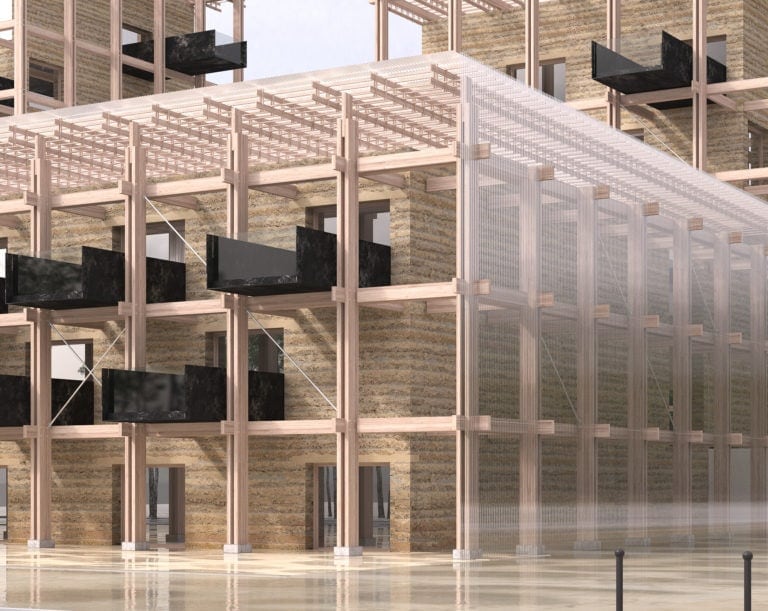 Comment redéfinir l’habitat collectif ? Comment offrir à tout un chacun un espace de vie agréable et inspirant ? Comment combiner écologie et construction ? Ce sont les questions auxquelles nous avons essayé de répondre à travers ce projet en pisé et bois combinant immeuble de logements, bureaux et ferme urbaine. Depuis vingt ans, notre agence s’est spécialisée dans la conception de logements expérimentaux sur le plan architectural et technique, qu’il s’agisse de logements collectifs ou individuels. Outre son ambition écologique, ce projet vise à favoriser le développement d’un microcosme social et participatif. Facteur d’intégration, il doit être pensé comme une aide au développement de la mixité sociale et générationnelle.